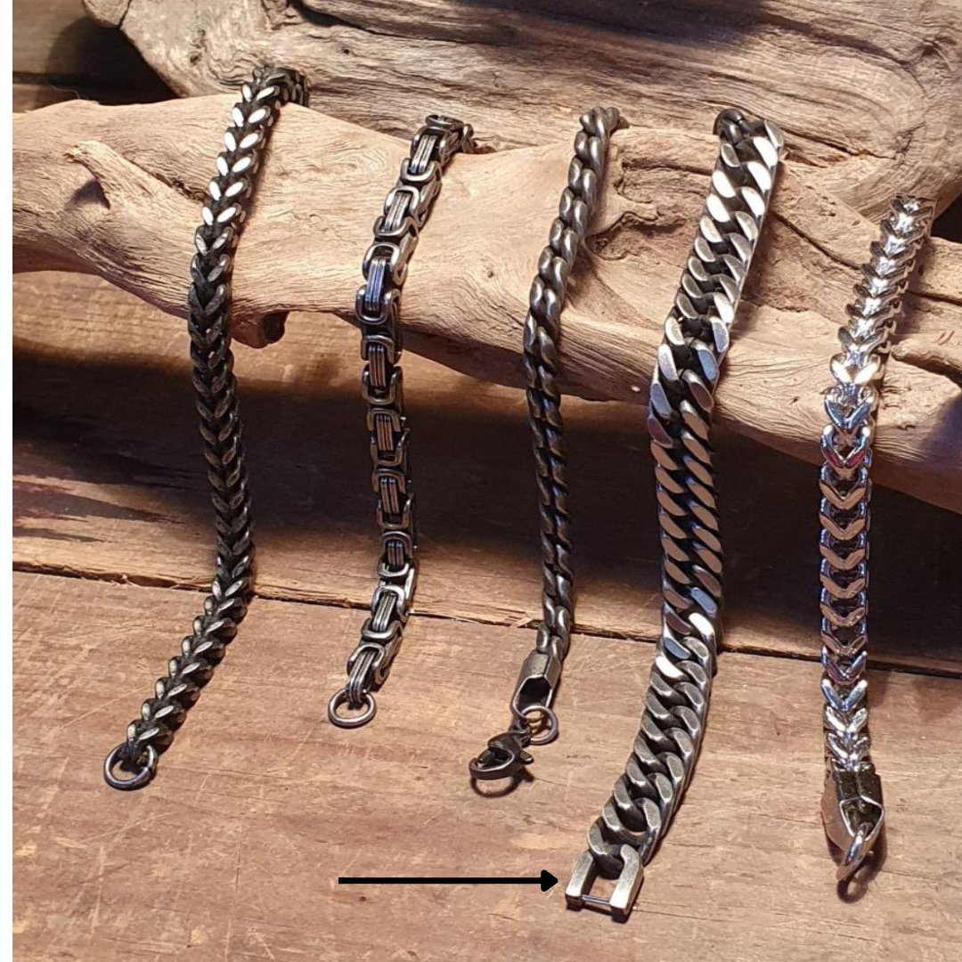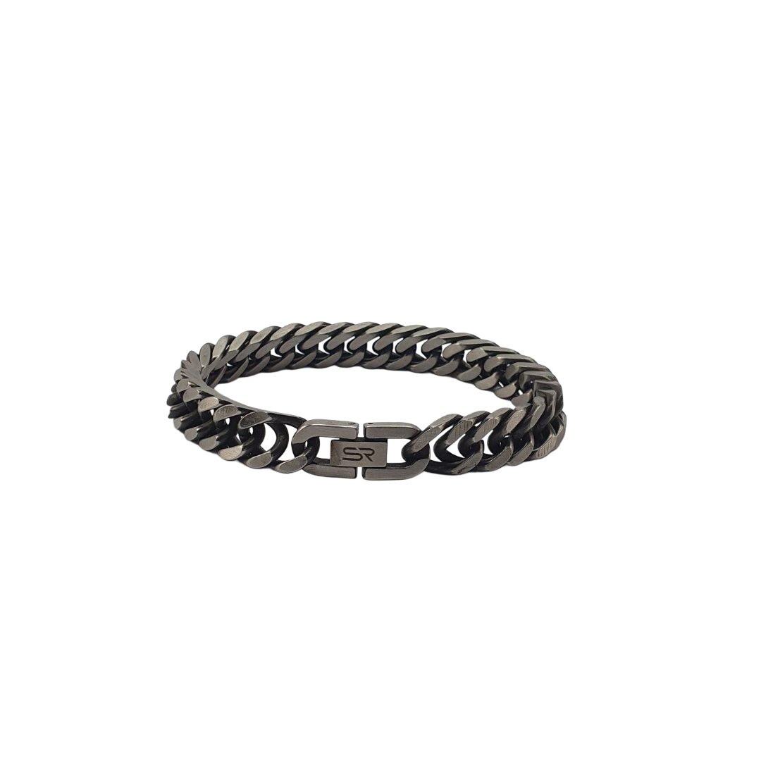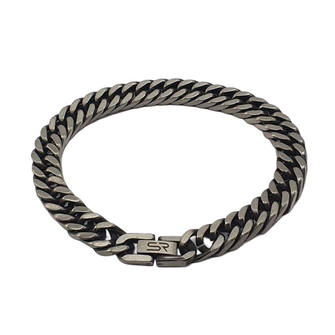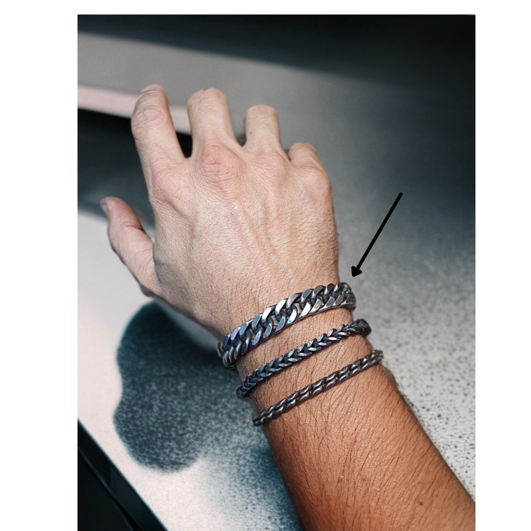 La TITAN es una pulsera de acero inoxidable con acabado stonewash, diseñada para hombres que proyectan seguridad en cada paso. Su textura rugosa y tono envejecido la convierten en una pieza agresiva pero elegante, perfecta para quienes no temen destacar.
